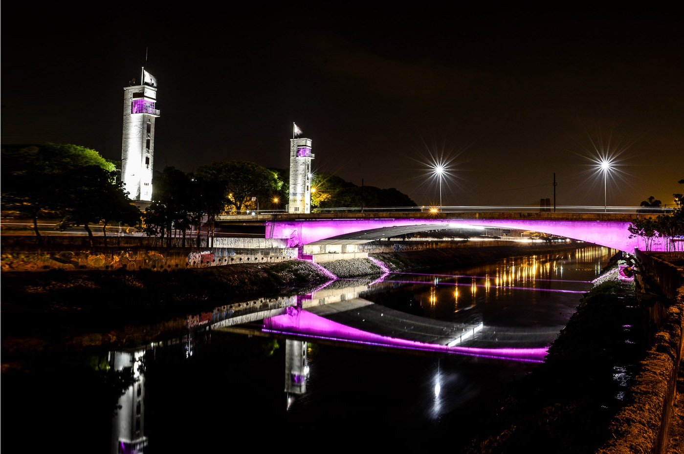 A Ponte das Bandeiras cruza o rio